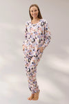 Long ski pyjama in Greta print. This striking pastel pyjama has a relaxed tee style, slight drop shoulder, long sleeves with detailed elastic shirred cuffs. The long pants have a comfortable elastic waist with a drawstring, ski pant elastic shirred cuffs. Cotton Bamboo is soft, cool and comfortable to wear.