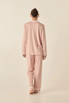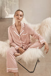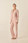 In a soft pink with white trim detail for this season. Our sleepwear features a stunning satin trim that adds a touch of elegance and sophistication to the design. The button-through top is both functional and stylish, making it easy to adjust the temperature and providing a flattering silhouette.