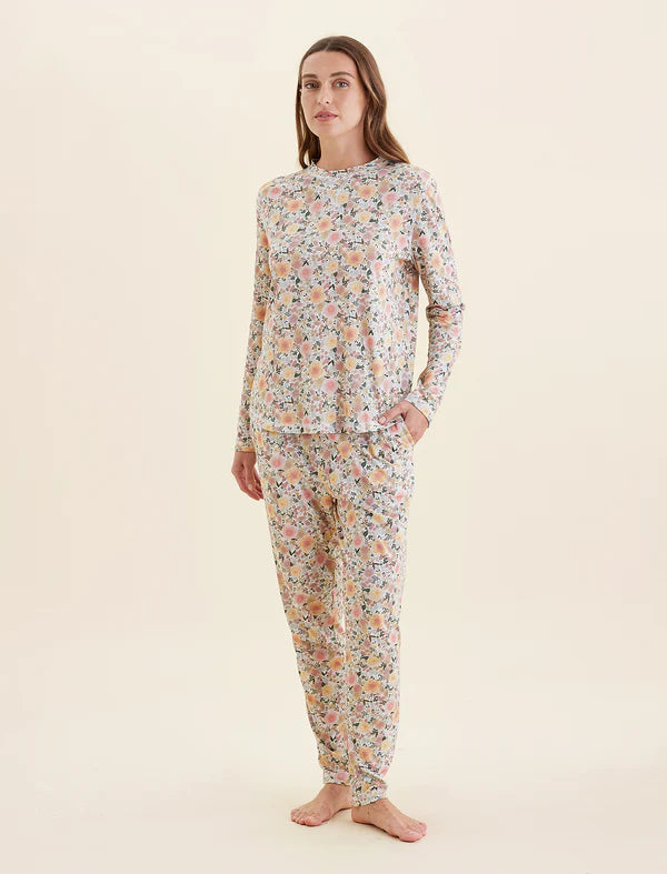 Experience pure comfort with our ultra-soft and stretchy 100% Organic Cotton. This set, with its gorgeous floral print, is designed for ultimate relaxation, whether you're lounging at home or curling up in bed.