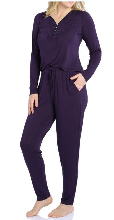 Unwind in comfort and style this winter in our women's Night Sky Bamboo Elastane Henley Top & Tapered Pant Set.