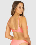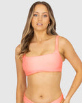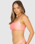 Baku's Rococco Bralette Bikini Top features a flattering square neckline with removable cups, boning, clip back and adjustable straps. Rococco is a luxury textural fabrication from Spain that is buttery soft, yet sophisticated and structured.