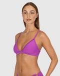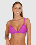 Baku's Rococco Fixed Ladder Lace Triangle Bikini Bra features ladder lace detailing and soft tie back. It also features removable soft cups, boning, adjustable and convertible straps and upsize cup fit.