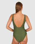 Designed for the modern woman- Rococco is our best-selling solid fabrication that is buttery soft, yet sophisticated and structured. Rococco provides flattering shaping power that ensures confidence and elegance. Baku's Rococco Longline One Piece Swimsuit features a flattering dropped neckline, highlighted with ladder lace detailing. It also features a low back, removable cups and is fully lined.