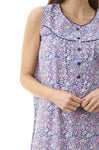 Daisy sleeveless short nightie features a vibrant deep blue-based floral print—perfect for the summer season.