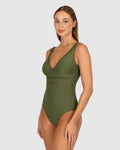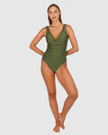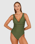 Designed for the modern woman- Rococco is our best-selling solid fabrication that is buttery soft, yet sophisticated and structured. Rococco provides flattering shaping power that ensures confidence and elegance. Baku's Rococco Longline One Piece Swimsuit features a flattering dropped neckline, highlighted with ladder lace detailing. It also features a low back, removable cups and is fully lined.