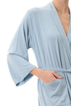 Florence Broadhurst   Marle knit jersey in dusk is perfect for warm summer nights -, cool and comfortable for lounging and sleeping.  Relaxed gown, wrap style with pockets, and tie belt.