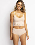 No ride up, no dig in; this range is comfort all over. Finished with a heat seal label and overlocked waist and legline creating a smooth and seamless finish with the body. Made in super soft bamboo, the Full Brief features a higher waistline and low legline for more coverage.