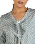 VEE NECK WITH CROCHET TRIM & PLEATING
