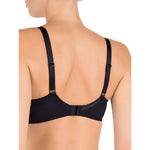 The bra is made of a slightly shiny material, decorated with a fashionable, graphic pattern. The upper part of the bra, near the neckline, was made of transparent tulle covered with patterns. Cups bra Felina 501 have a special cut: on the sides sewn is a strengthening wedge helping to maintain and profile the bust, even the largest size. The bottom part of the bowl is smooth and one-colored.  CUSTOMER NOTE:  Magic Blue colour appears near Black.
