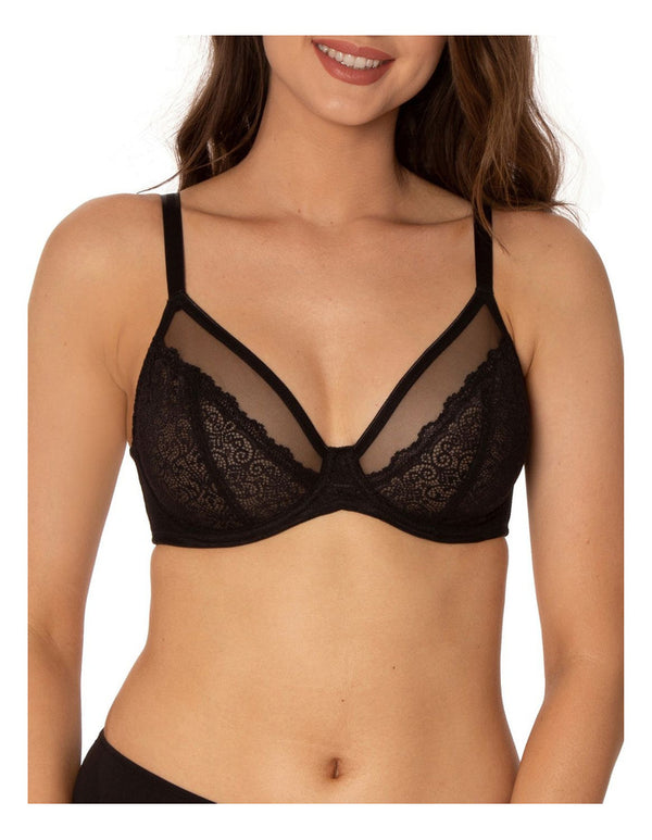 • A gorgeous geometric lace is offset by a sheer yet firm top panel.