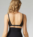 The Subtile Wirefree Shapewear Triangle Bra defines your body by utilising control mesh and responsive French lace. Comfort meets curves in this modern piece of lingerie. The cups give a natural shape, defined by vertical seams, while wires on the side panels of this bra sculpt your figure. Along your neckline, a lace trimming kisses your skin, and in the centre of each cup, a knitted fabric juxtaposes against the intricate lace, providing a chic look and added support. Comfort is adorned with a lace ballet back featuring wide elastic that draws three sturdy hook fasteners together. Multiway straps make this modern bra suitable for the outfit of your choice – simply leave the straps in the classic position, or crossover for added invisibility.