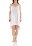The design features adjustable straps for a custom fit, a delicate pleat front detail, and lace trims that add a touch of elegance. The relaxed A-line fit and curved high-low hem create a flattering silhouette, allowing for effortless movement and ultimate comfort throughout the night.
