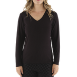 A simple classic for bedtime or lounging, this long-sleeve v neck top has a touch of elegance.