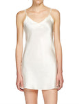 Crafted from pure silk, this chemise flatters the female figure with a V-neck, thin adjustable straps and flared skirt.