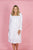 A loose fitting nightie, in a non-stretch cotton. This uncollared nightie has a high, yoked back in plain fabric. The hailspot front has a scoop neck and deep buttoning placket. The front yoke is detailed with pintucks and small, floral embroidery.