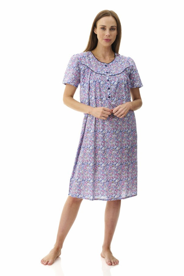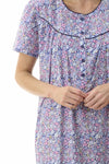 Daisy short sleeve short nightie features a vibrant deep blue-based floral print—perfect for the summer season.