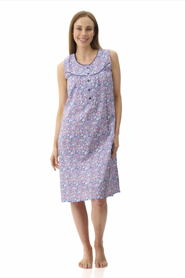 Daisy sleeveless short nightie features a vibrant deep blue-based floral print—perfect for the summer season.