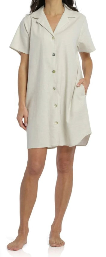 IVORY SUMMER DREAMING LINEN BUTTON THROUGH NIGHTIE