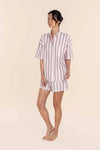 The Sasha Boyfriend Short Pyjama Set in blush pink is your summer wardrobe’s quiet achiever. Made from 100% cotton, it’s light on the skin yet polished in style, perfect for both slow mornings at home and stepping out with sandals and a tote. The relaxed fit makes it an easy choice for warm nights, while the tailored touches give it day-to-night versatility.