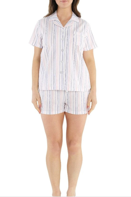 Sleep soundly and wake up refreshed this summer with Nara Cotton with Nara Stripe Shortie Pyjama Set.