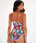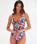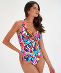 A classic dual underwire suit featuring assymetrical drape detail which aids in bust minimilisation. A power mesh shelf bra supports the C/D, DD/E and F/G underwire cup fitting. Body sculpting power mesh lined front panelling holds and shapes the body whilst the adjustable straps enable a more tailored and comfortable fit.