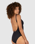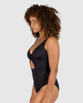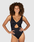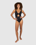 Baku's Chloro Cut Out One Piece features a flattering centre cut-out, highlighted by a twisted detail at the dropped neckline. It also includes soft removable cups, adjustable straps, and a low back.