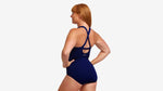 A classic one piece that features form flattering princess-line side panels with a low leg line.