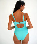 Retro Deco Underwired Ring One Piece Swimsuit in Aqua