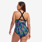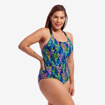 A classic one piece that features form flattering princess-line side panels with a low leg line, suitable for a DD-E Cup. With wide, comfortable criss cross back straps and a mini keyhole design feature this style is perfect for your active lifestyle. Includes double front lining, shelf bra, padded cups and mastectomy pocketing.